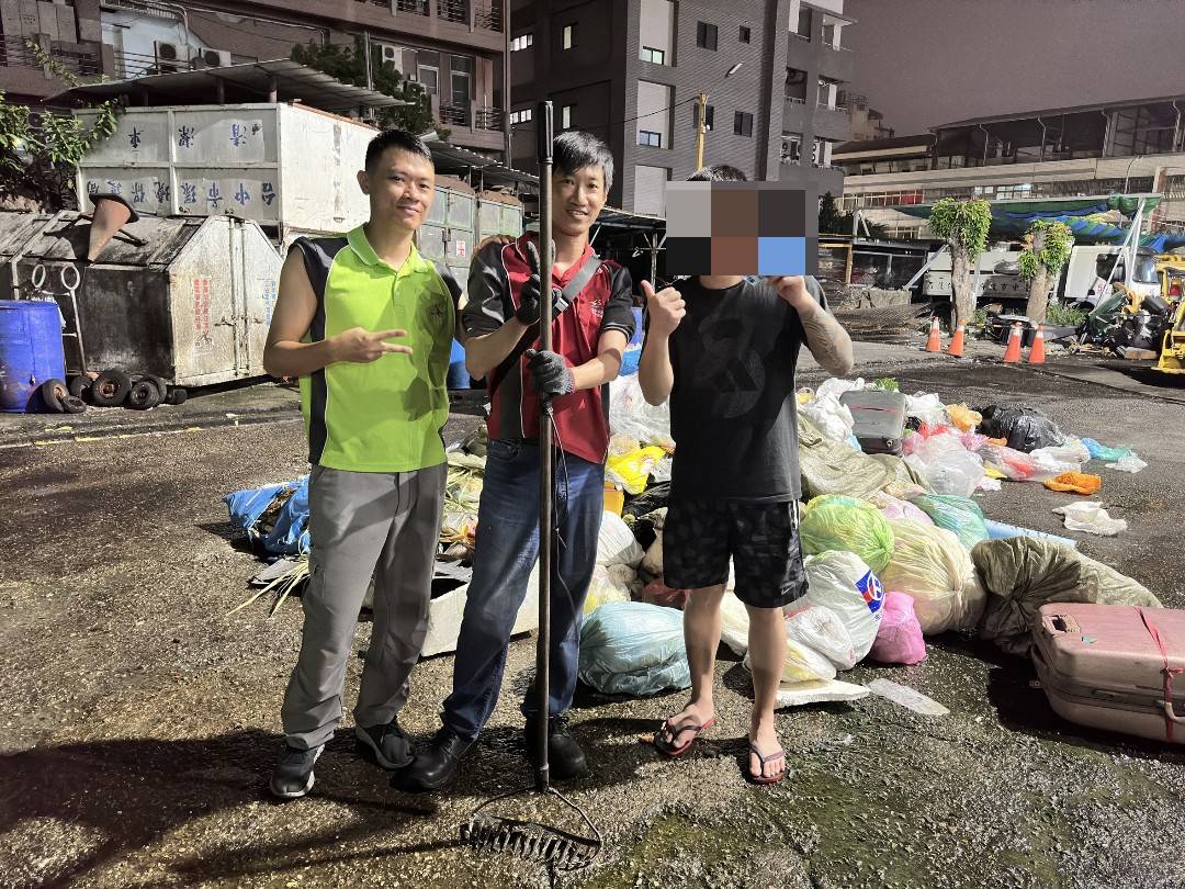 環保局提到,余班長接到羅姓民眾尋找失物的電話後,即調派備勤同仁將垃圾車內垃圾傾倒出來,以山貓堆平垃圾包,再用耙子協助逐包破袋翻找,所幸最後民眾找回現金。