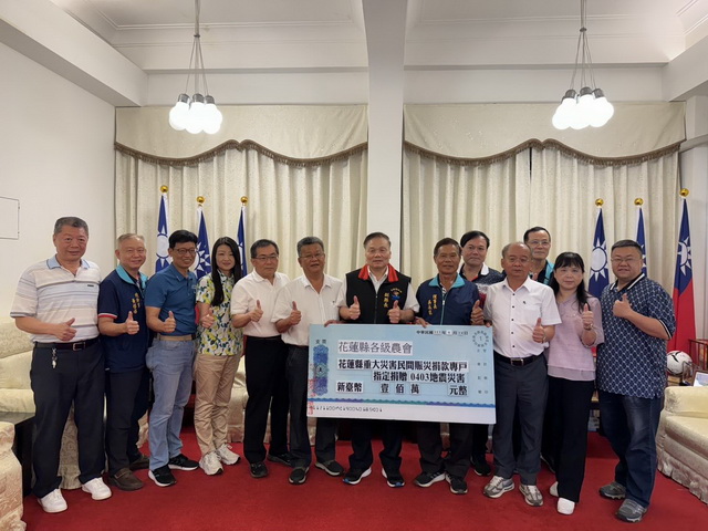 【台灣新聞網記者林月女/花蓮報導】0403地震重創花蓮,花蓮縣各級農會今(14)日拜會花蓮縣政府,合併捐贈新台幣100萬元,壽豐鄉農會也捐出果艷西瓜公益競標所得新臺幣10萬元,協助災後復興。由花蓮縣副縣長顏新章代表縣長徐榛蔚受贈,希望藉此善舉拋磚引玉,邀請各界共同為花蓮災後重建盡一份心力,顏副縣長頒發感謝狀,並代表花蓮鄉親表達最深的感謝。
