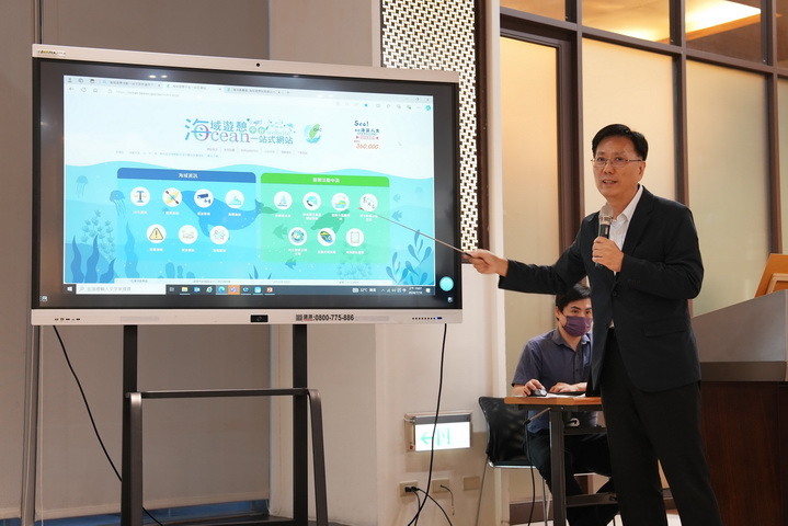圖說:海洋委員會王茂城處長示範「海域遊憩活動一站式服務資訊平臺」各項功能及內容。