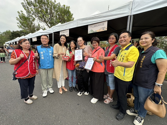 圖說3:竹山鎮桂林社區與南投縣長許淑華及來賓合影。(記者李汶融攝)