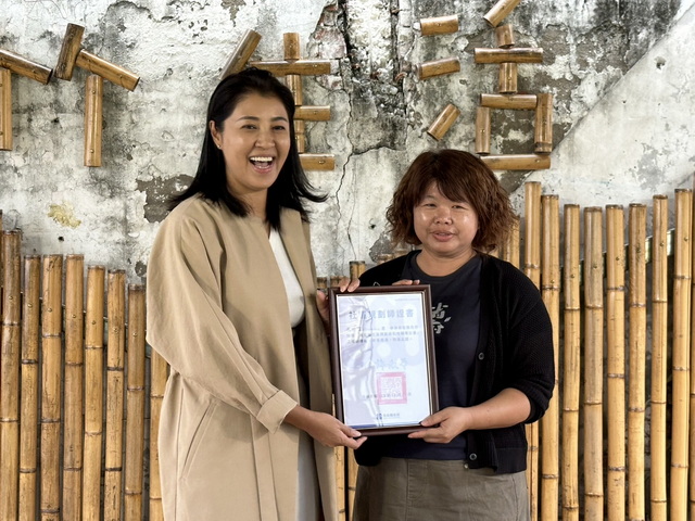 圖說2:南投縣長許淑華頒發社區規劃師證書給朱怡甄。(記者李汶融攝)