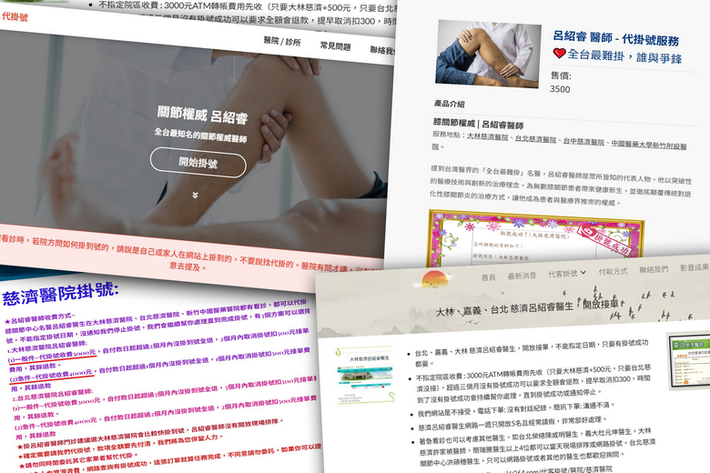 圖說1:有償代掛號關節名醫呂紹睿,只要能掛到號就索價上千元,想搶最近期號碼也要加價數千元。