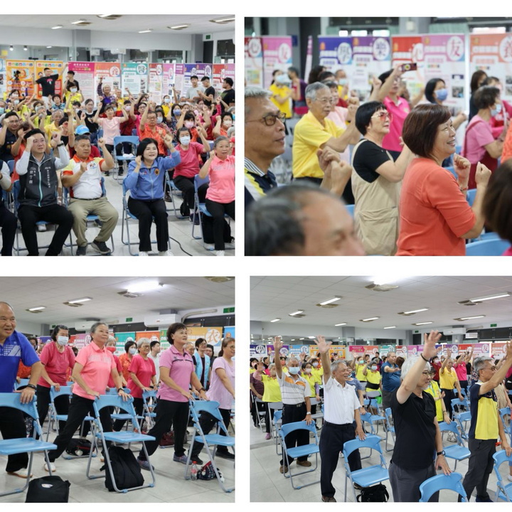 雲林縣長張麗善、雲林縣政府社會處長林文志、社團法人雲林縣雲林國際青年商會會長簡于傑、縣議員陳永修夫人柯嘉君、陳芳盈議員秘書郭米蘭、斗六市民代表會賴瑪玲代表、斗南鎮公所主秘盧瓊枝、鎮西里長張寶德等人一早跟著舞蹈老師帶領各據點與長青食堂的幹部和志工伙伴動起來,讓平時忙於各據點及長青食堂的服務人員、志工等能透過運動直播派對觀摩學習,將運動模組帶回據點及食堂,帶領長輩一同透過運動,預防及延緩失能、老化。