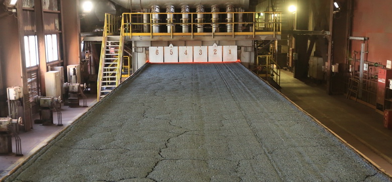 圖說2:為維持高爐內原料的流動性及透氣性,鐵礦砂須先在燒結工場製成具透氣孔洞且粒度大小均勻的塊狀燒結礦,才能投入高爐生產鐵水。