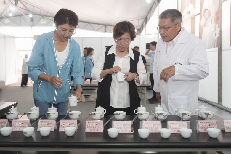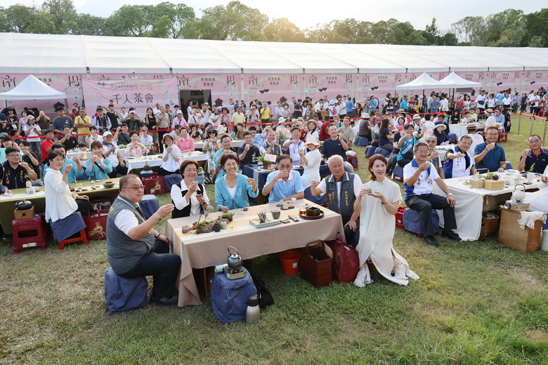【台灣新聞網記者陳儀鐸/南投報導】南投世界茶業博覽會最吸睛的活動-千人茶會6日下午在中興大操場盛大登場,350席各具特色的茶席熱情迎賓,南投縣長許淑華偕同彰化縣長王惠美、縣議員林儒暘、前縣長林明溱及嘉賓們,在夕陽下與來自各地的愛茶人士齊聚青青草原,品茶看表演,體驗千人茶會視覺、聽覺、嗅覺三重享受。