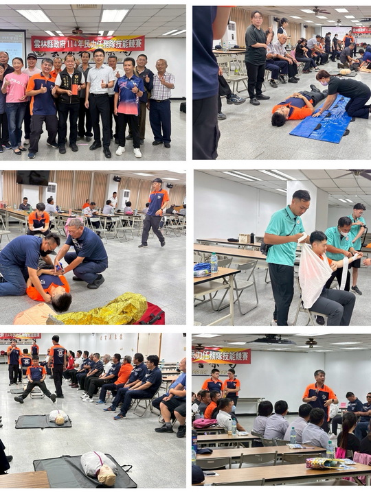 此次競賽由各分局遴選10名菁英組隊參加,項目包括「心肺復甦術(CPR)」及「止血帶包紮」兩大主題,旨在提升民防人員於緊急狀況下的應變能力。活動採「訓用合一」方式進行,並安排雲林縣消防局講師講解兩大主題技巧與應用時機,隨後即展開競賽。