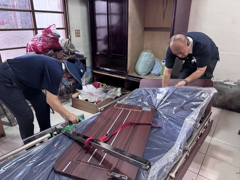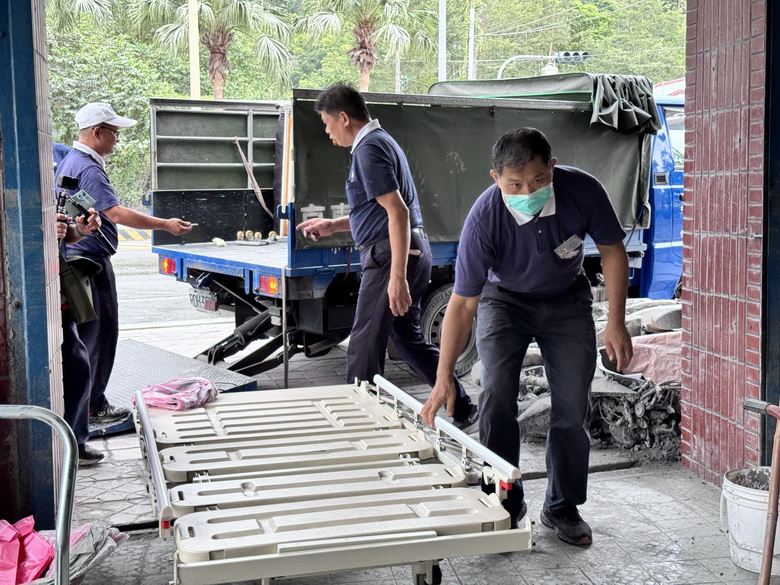 災區民宅陸續清掃乾淨,許多原本依靠輔具的民眾陸續向慈濟提出二手輔具需求。慈濟志工載著電動床、輪椅、助行器、氣墊床、便盆椅、單腳手杖、四腳手杖,陸續從中部、北部出發,10月9日第一戶來到光復車站前的一對老夫婦家。