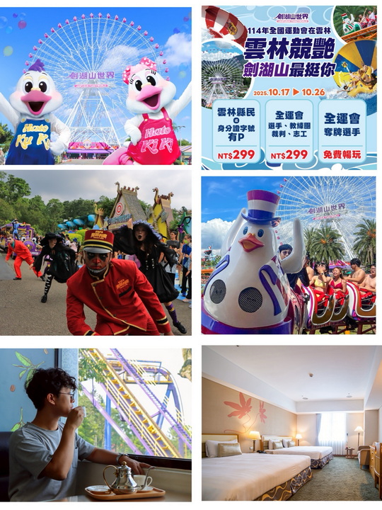【台灣新聞網記者李婉愉/雲林報導】適逢 114 年全國運動會盛大舉辦,為響應體壇盛事並回饋鄉親,劍湖山世界主題樂園自114年10月17日起至10月26日止,推出「雲林競艷 劍湖山最挺你」超值優惠活動,力挺全運會,讓參賽選手及雲林鄉親都能以最優惠的價格盡情暢玩!