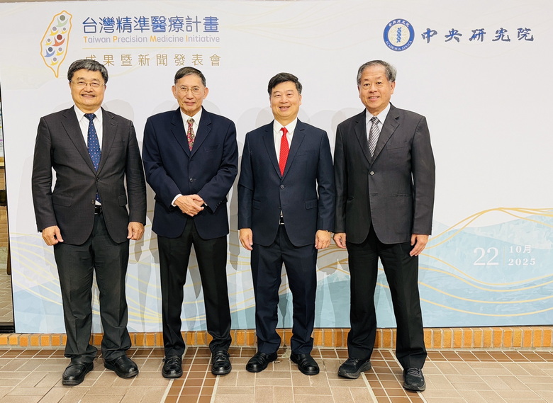 圖說1:高醫團隊積極參與「台灣精準醫療計畫」 成果榮登《Nature》《Science》等國際頂尖期刊。由左至右為高醫TPMI計畫主持人鐘育志教授、台灣精準醫療計畫顧問陳垣崇院士、創始計畫主持人郭沛恩院士、高雄醫學大學附設中和紀念醫院吳文正教授。