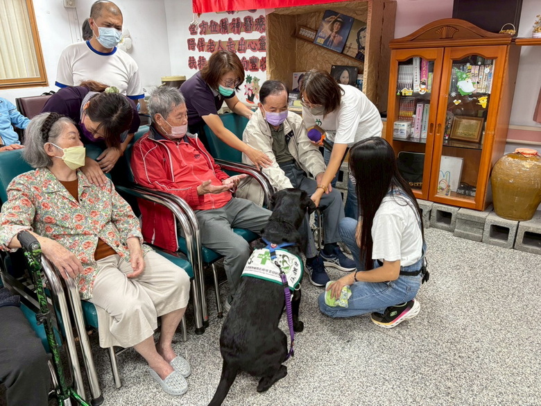 專業結合愛 打造幸福長照環境。草屯療養院附設南投縣公立社區長照機構黃冠綸醫師表示,結合音樂律動與認知訓練的活動,能在愉快氛圍中啟動長者的身心功能,促進記憶力、專注力及肢體協調,並增進社交互動,讓長輩在動手、動腦、動腳的過程中重拾自信與笑容。草屯療養院老年精神科郭佳倫主任表示,寵物輔助治療已被廣泛應用於失智照護,研究顯示與動物互動可刺激長者的感官與情緒反應,提升專注力與社交意願,並減少焦慮、憂鬱與孤獨感。透過毛孩的陪伴與非語言互動,能有效安定情緒、促進身心健康。