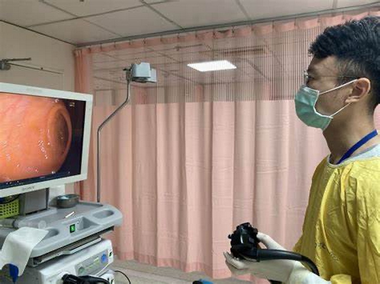 圖說4:衛生福利部南投醫院大腸直腸科許家榮主任進行大腸鏡檢查,呼籲民眾糞便潛血陽性者,及早進行大腸鏡檢查,可有效降低罹癌風險。
