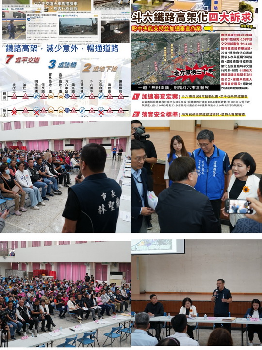 斗六市長林聖爵表示,藉由此次地方說明會,希望中央能正視地方需求與民眾期待,具體回應地方訴求。市公所代表斗六市民向中央表達四大訴求:加速審查程序、落實安全標準、重視交通安全問題、以及排除非專業干擾。林市長指出,鐵路貫穿斗六市中心,車流與人流交錯頻繁,安全風險極高。在縣府提報中央審查期間,又接連發生7起平交道事故,造成4人不幸喪生、1人重傷,不僅奪走無辜生命,也導致列車停駛、交通全面癱瘓。