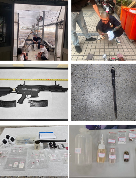 經溯源追緝,陸續於嘉義、桃園與彰化等地查獲幕後郭姓首腦、葉姓金主及共犯計12人到案,現場扣案毒品海洛因18.44公克、大麻2.7公克、安非他命57.6公克、依托咪酯83.32公克,並查獲拘禁被害人所用鎮暴槍、子彈、刀械、監視設備、束帶、辣椒水等工具。