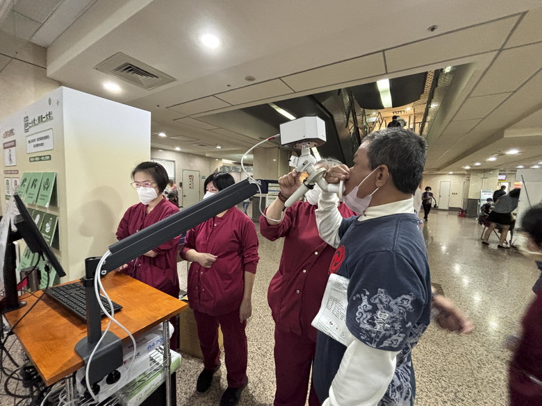 圖說3:現場設置流感與疫苗諮詢站,提醒民眾把握「黃金48小時」及早就醫,守護高齡與慢性病族群健康,同時提供肺功能檢測,協助民眾即時了解自身肺部狀況是否達到健康標準。