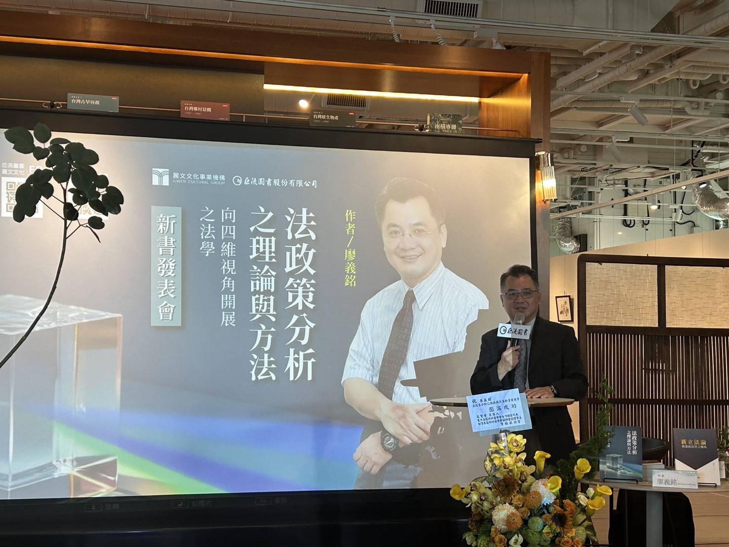 【台灣新聞網記者張美惠/高雄報導】國立高雄大學政治法律學系廖義銘教授最新著作《法政策分析之理論與方法》13 日正式出版,並在高雄承風書店舉行新書分享會。這本書延伸廖教授多年來對法律、治理與公共政策的研究成果,也首次將法政策分析的一套完整方法系統化呈現,引起法學界高度關注。