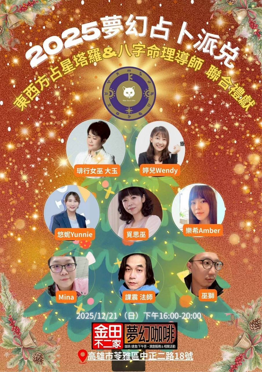 【台灣新聞網記者張美惠/高雄報導】在高雄, 想要過一個另類聖誕?由金田不二家主辦,高雄市旅遊傳播協會協辦的Xmas Party占卜派「兌」,12月21日將盛大登場,開放動漫迷免費入店。現場規劃系列活動,邀請8位占卜師進駐,提供心靈諮詢,消費一份聖誕分享套餐,即可體驗東西方占卜2次。