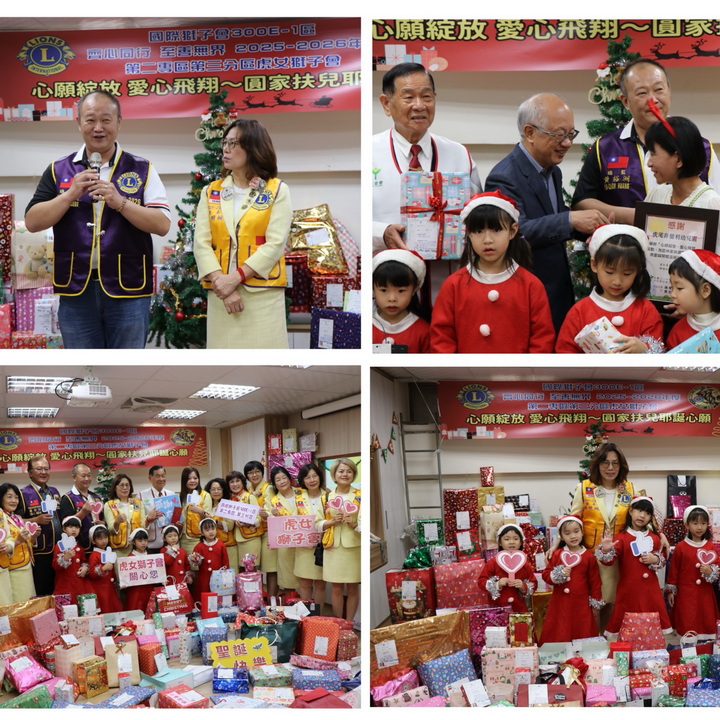 國際獅子會300E-1區2025-26年總監黃裕洲率領內閣團隊前來共襄盛舉歡喜表示:今年「齊心同行 至善無界」主題,「齊心同行」走入社區,讓愛心無極限,不分對象與族群,而這場愛心分享就是「齊心同行、至善無界」最好體現。第三分區主席李美惠讚賞:虎尾非營利幼兒園與雲林家扶共同舉辦深具意義心願樹『心願綻放 愛心飛翔』活動,為經濟弱勢家扶兒童募集聖誕禮物,更讓獅兄獅姊齊心同行散播歡樂散播愛。