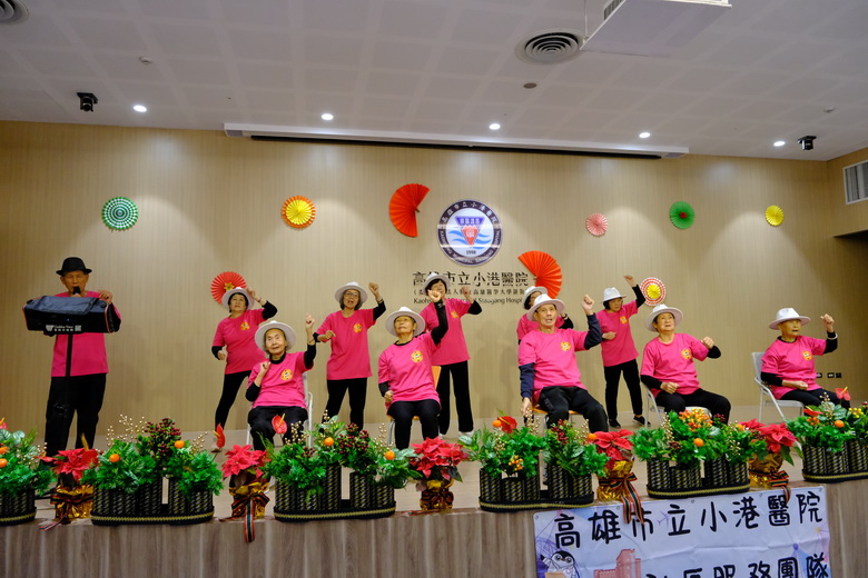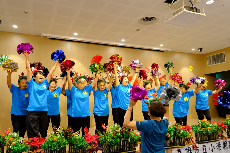 圖說1:小港醫院舉辦「114年港動八寶・健康共榮成果發表會」,來自鳳山、林園、小港、前鎮區的8個C級巷弄長照站,組成了活力滿點的「千歲團」,輪番上台大秀才藝 。