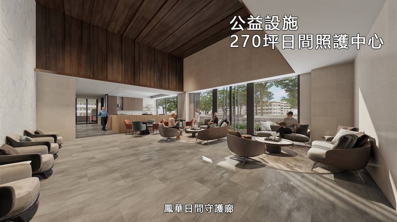 該案的公共與公益設施,包含室内270坪日間照顧中心及室内150坪環保局辦公室等,提供長輩白天的照護服務,包括生活照顧、餐飲服務、交通接送、健康促進活動、文康休閒活動,讓長輩在日間也能獲得專業的照顧和豐富的社交生活,並捐贈一座Ubike2.0車站,以落實大眾運輸導向之捷運城市政策。