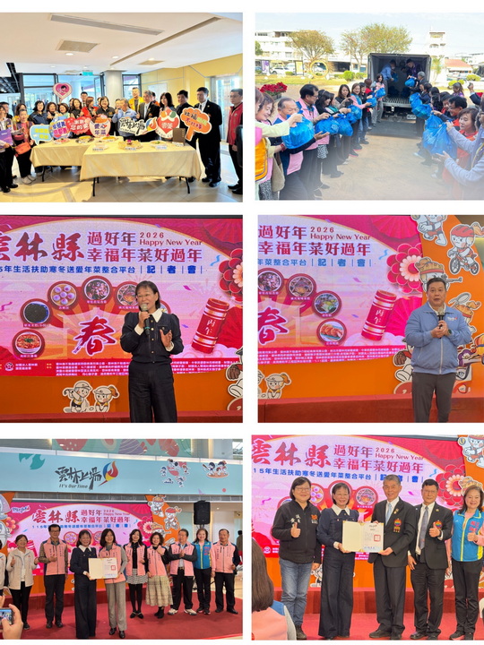 【台灣新聞網記者李婉愉/雲林報導】雲林縣政府今(13)日於縣府親民大廳運用本縣公益彩券盈餘分配款補助舉辦「在雲林過好年,幸福年菜好過年」115年生活扶助寒冬送愛年菜整合平台暨實物銀行春節送暖記者會,縣長張麗善親自頒贈感謝狀,期待這股溫暖社會的力量延伸至更多面向,也將捐贈物資製成春節緊急物資袋,現場轉交予各鄉(鎮、市)公所、警政單位代表及民間團體,期待串聯各機關、單位網絡一起齊力加強關懷、守護弱勢民眾春節期間平安,就近領取物資,並請公所及相關單位於春節前協助發送年菜給需要的家戶,祈願鄉親能歡度新春佳節。