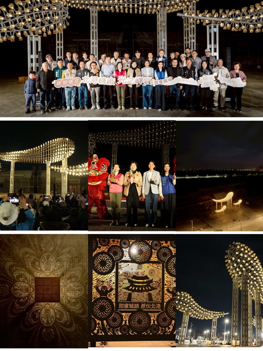 【台灣新聞網記者李婉愉/雲林報導】雲林縣政府持續推動北港糖廠歷史場域修復活化,位於北港糖廠「北港1911好庫文化產業園區」大型藝術裝置作品《光之祥雲》,(1/16)晚正式啟燈。作品結合百年糖業文化與北港媽祖信仰意象,透過光影藝術為老場域注入新生命,並納入2026北港燈會整體規劃之一部分,展現北港元宵節慶的文化意象。