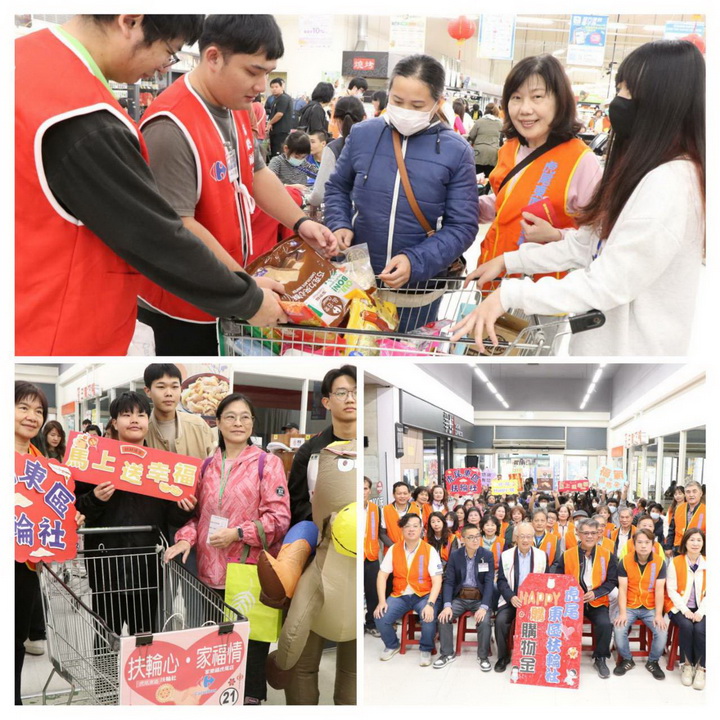 【台灣新聞網記者李婉愉/雲林報導】歡喜「馬」上購、幸福「馬」Happy,虎尾東區扶輪社連續12年舉辦「社區扶輪日:HappyGo 迎春送暖快樂購」活動,由王慶樟社長率領超過40位社友及寶眷,陪伴雲林家扶30戶親子、每戶3000元在家樂福虎尾店幸福大採購。雲林家扶社工更變身「吉祥馬」陪伴採買,讓家庭在輕鬆、安心的氛圍中備齊所需物資,感受社會的支持與祝福,為新的一年注入希望與力量。