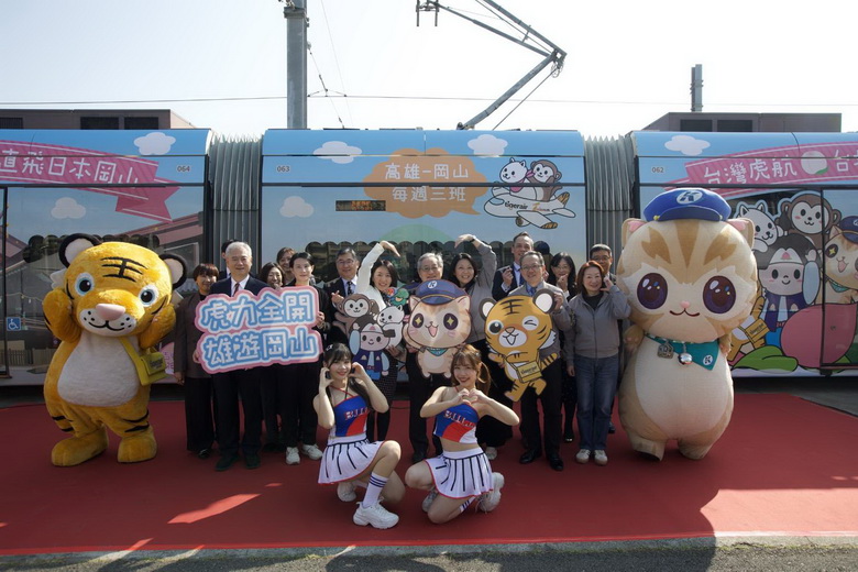 今(22)日上午於高雄捷運輕軌機廠內盛大舉辦「虎力全開・雄遊岡山!」台日三方旅遊彩繪輕軌啟動記者會,由蜜柑站長領銜好朋友虎將擔任開場表演擔當,可愛又淘氣的模樣瞬間將現場氣氛拉升到最高點。高捷公司楊岳崑董事長表示,活動以台日三方可愛角色串聯兩地觀光意象,期望透過交通場域的高曝光度與趣味體驗,帶動民眾以更輕鬆、更貼近生活的方式認識台灣高雄與日本岡山,並鼓勵旅客規劃台日雙向旅遊行程。