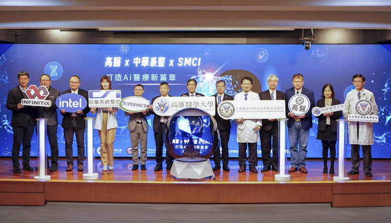 返回上一頁啟用儀式邀集財團法人私立高雄醫學大學董事會陳建志董事長、高雄醫學大學余明隆校長、高醫王照元院長、中華系統整合公司吳明德董事長,與美超微電腦公司林振瑋總經理等代表,共同點亮象徵智慧醫療新紀元正式啟航的啟動球,展現高醫攜手全球頂尖科技夥伴,推動 AI 醫療落地應用的堅定決心。