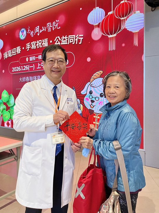 【台灣新聞網記者張美惠/高雄報導】為迎接農曆新年,營造溫馨年節氛圍,高醫岡山醫院於26日上午在醫院一樓大廳舉辦「揮毫迎春・手寫祝福・公益同行」活動,邀請書法老師現場揮毫,並結合春聯義賣、紅包與春聯 DIY、環保二手盆器再利用等多元內容,吸引不少病友、家屬及民眾駐足參與,在醫院空間中提前感受濃厚年味與人情溫度。