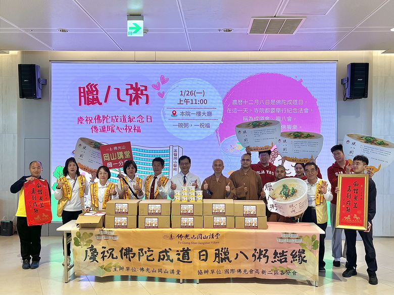 活動尾聲,佛光山特別準備臘八粥與民眾分享,於寒冬中送上暖心滋味,讓前來就醫的病友與陪同家屬,在醫院中也能感受到如同家一般的溫暖。臘八粥限量提供,現場排隊人潮相當踴躍,氣氛溫馨感人。