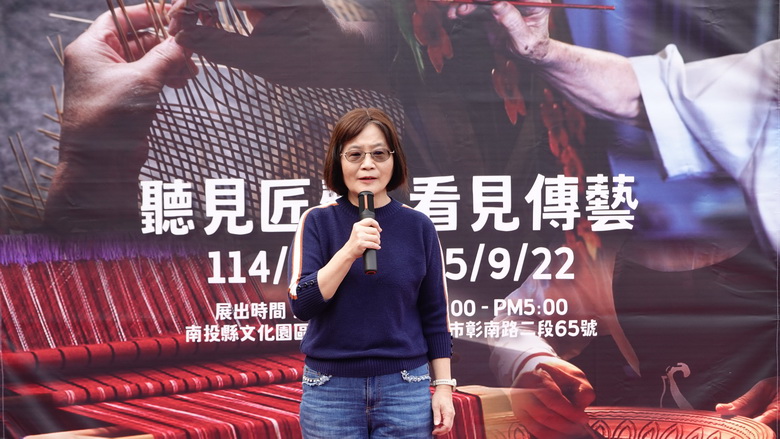 圖說:南投縣政府文化局代理局長李玉蘭出席「山林印記‧織音圖魂」特展。
