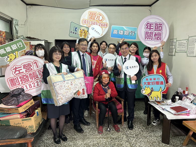 返回上一頁高雄銀行代理董事長陳勇勝率領同仁到符奶奶家中拜年、除舊佈新貼春聯,並送上全新的棉被讓奶奶感受到社會的溫暖。陳勇勝表示,高雄銀行做為在地銀行,對社會公益不遺餘力,自97年起由高雄銀行及所屬同仁共同捐助成立「高雄銀行社會福利慈善基金會」,除每年都會舉辦捐血活動外,並持續辦理各項公益活動,積極關懷弱勢族群,期待讓愛與溫暖能夠流動到社會每個需要的角落。