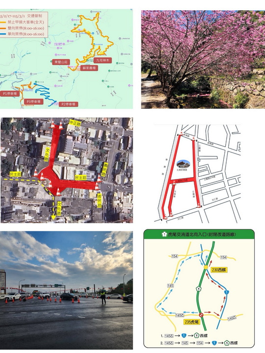 草嶺櫻花季將於2月17日至3月1日舉行,春節期間及例假日縣政府推出4條接駁車路線。警方建議,因草嶺地區山路狹窄,駕駛人應利用沿線指定停車場(如草嶺第一停車場、第二停車場等),避免違規停車造成擁堵。此外,草嶺地區多處道路如雲220-1線及九芎神木全線等,將實施單向或雙向禁止停車管制,請駕駛遵守規定,確保交通順暢。