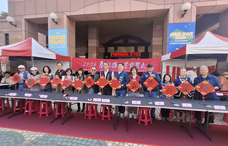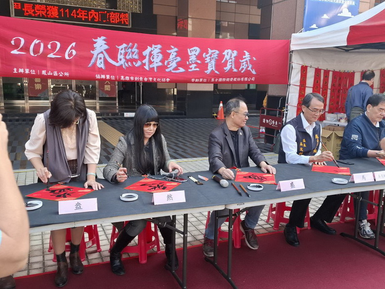 【台灣新聞網記者張美惠/高雄報導】鳳山區公所12日在鳳山區公所廣場舉辦「2026 春聯揮毫墨寶賀歲」活動,結合書法藝術展演與民眾互動體驗,現場墨香四溢,洋溢溫馨熱鬧的新春氣氛。