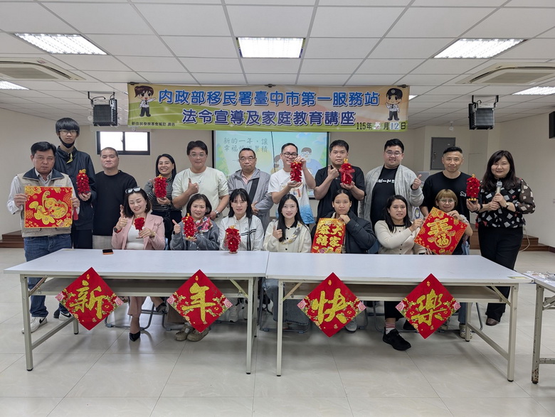 【台灣新聞網記者李玲英/台中報導】初一早、初二早,初三「睡到飽」,為什麼呢?移民署臺中市第一服務站特別於農曆春節前夕,邀請在臺中地方法院擔任家事、民事調解委員,同時也是園藝治療師的張儷姻老師,向來自不同文化背景的新住民學員們,介紹臺灣農曆春節與大年初三的文化意涵,並引導大家思考如何善用春節假期經營婚姻與家庭生活。