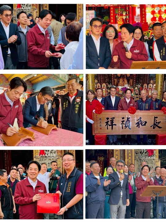 【台灣新聞網記者李婉愉/雲林報導】總統賴清德(18日)下午由雲林縣長參選人劉建國立委、斗六市長參選人尹令瑛等人陪同,前往虎尾福安宮「糖廠媽」、斗六石榴班長和宮「斑鳩媽」參香祈福並發放福袋。