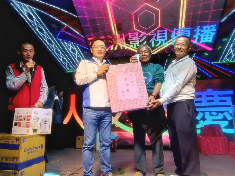 圖說:南投縣政府計劃處長邱紹偉蒞臨指導摸彩合影。(記者李汶融攝)