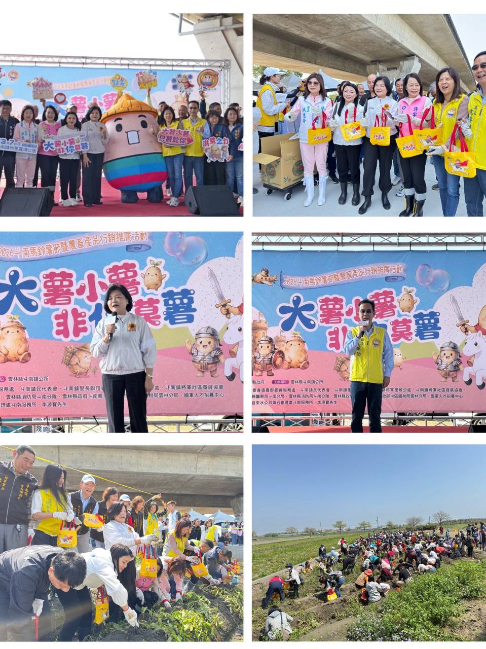 今天活動包括縣長張麗善、立法委員張嘉郡、許宇甄、斗南鎮長沈暉勛、議員蔡東富夫人洪惠玲及多位地方民意代表共同參與,與民眾一起體驗挖馬鈴薯、品嚐馬鈴薯料理與手作DIY,讓民眾在歡樂氣氛中感受斗南馬鈴薯的魅力。