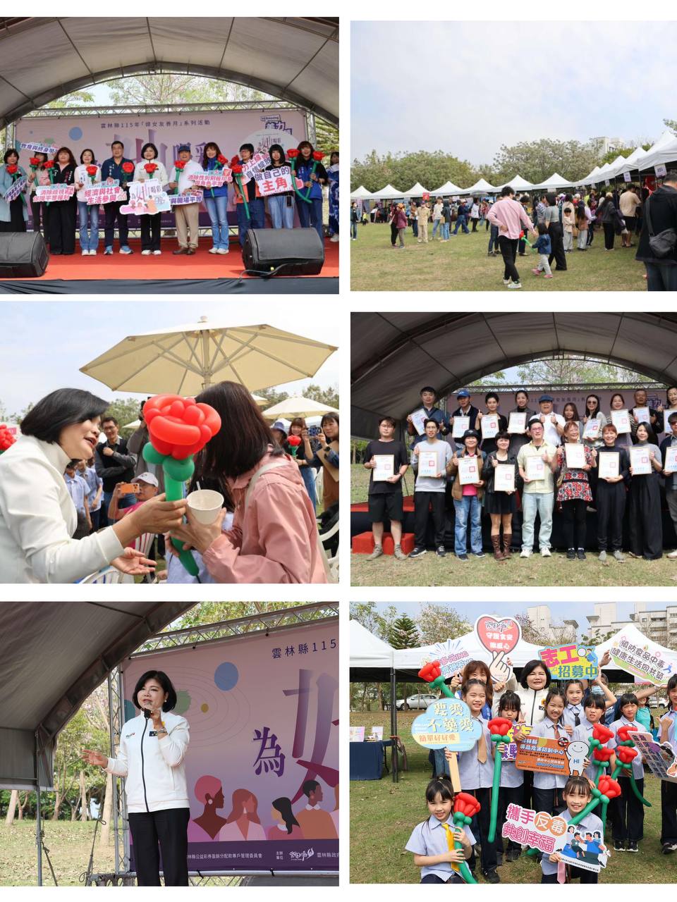 【台灣新聞網記者李婉愉/雲林報導】為響應國際婦女節,雲林縣政府今(8)日於斗六藝術水岸園區舉辦「雲林縣115年婦女友善月-她日好市 Cheer HER Life 市集」,並表揚感謝性別友善場域推動單位的共同參與。縣長張麗善、社會處長林文志、斗六市長林聖爵、斗六市代會副主席黃尤美等一同出席,祝福所有的婦女朋友,天天都像38婦女節一樣,開心、幸福、快樂。