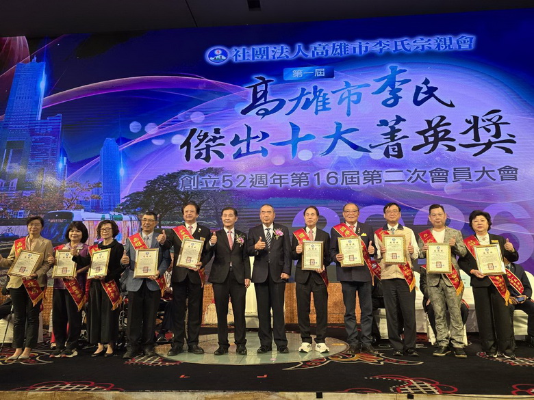 【台灣新聞網記者張美惠/高雄報導】社團法人高雄市李氏宗親會8日舉辦創立52週年、第16屆第2次會員大會,並同步進行「第一屆李氏傑出十大菁英獎」頒獎典禮,「科技獎」由睿田能源股份有限公司負責人暨總經理李佳蓉獲獎,現場冠蓋雲集,場面隆重。