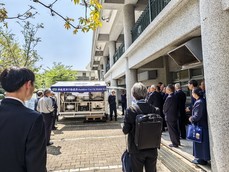 慈濟高雄災害應變中心召集人潘機利,邀請救災時15個功能組的組員,陪伴一見勝之知事等團隊,對各組所負責的援救程序詳細述明,同時由志工丁雪玉一一介紹與導覽靜思堂的多元化功能。