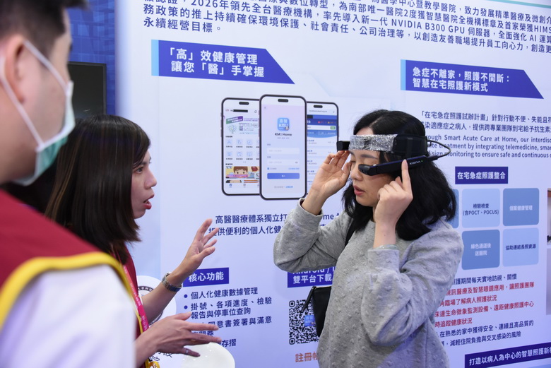 圖說1:2026高雄智慧城市論壇暨展覽-智慧醫療主題館20日登場,高醫醫療體系以健康台灣深耕計畫為核心,打造智慧在宅醫療新模式。