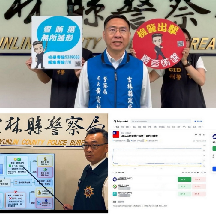 【台灣新聞網記者李婉愉/雲林報導】雲林縣警察局全面啟動「115年九合一選舉」查賄制暴與查緝賭盤工作,近期於網路巡邏過程中,北港分局發現去中心化預測平台Polymarket已針對年底選舉開設賭盤,涉嫌引導民眾以虛擬貨幣下注選舉結果,嚴重影響選舉公平性。