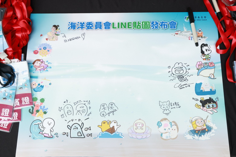 在3月28日臺北西門町舉辦的「海洋主題LINE貼圖發布會暨粉絲見面會」,現場插畫家分享首次嘗試海洋題材的心路歷程,展現跨界結合的創意火花,創作過程更是一次認識海洋文化的契機。插畫家weiweiboy指出,特別將角色「可愛大王」轉化為海洋生物,希望透過貼圖傳遞保護海洋環境的理念;吉文考古則分享,參與過程中更加理解海洋文化的多元面向;囂搞以膠筏與海鮮粥為靈感,將漁村生活元素融入作品。