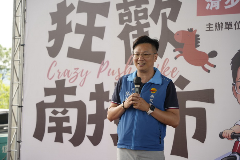 圖說:南投市公所舉辦「狂歡南投市滑步車競賽」,南投市長張嘉哲親出席並表示市公所將持續推動親子友善環境建設。