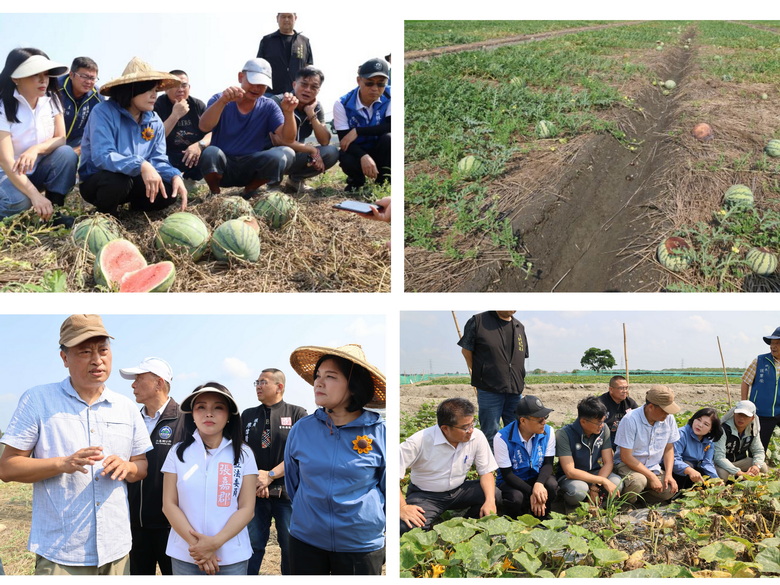 雲林縣長張麗善表示,雲林濁水溪沿岸所盛產的西瓜是全台品質最好、口感第一、甜度也最高的瓜果,清明節的連日大雨,多數屬砂質地的瓜田,排水狀況良好而無礙,但部分田區土質屬較不易排水,造成根系腐爛,無法吸收水分跟養分,外表雖然看起來完整,但甜分不夠,眼看再10多天就可收成的西瓜,卻無法收成,血本無歸。感謝農業部農糧署中區分署、台南區農業改良場斗南分場及二崙鄉公所,配合縣府的邀集盡速進行四方會勘,期讓受損的瓜農可透過天然災害申報,多少減少損失。
