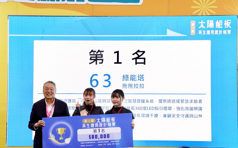 榮獲金牌的江詠琇與蘇怡文,以偏遠山區救援需求為設計出發點。她們觀察到登山客迷途或受困時,常因缺乏電力與通訊設施而延誤救援,於是利用退役太陽能板設計出「綠能塔」,該裝置可在斷電與無網路的環境中自給自足發電,並結合高亮度導引燈與高功率揚聲器,不僅能協助迷途者辨識方向,也能放大求救訊號,提高被發現的機率。這項設計不僅體現資源再利用的價值,更直接回應山域安全議題,成為爭取黃金救援時間的重要工具。榮獲銀牌的何語宸、曾筠惠與李愷文,則將設計視角延伸至街頭巷尾的攤商生活,團隊以再生太陽能板為核心,開發「太陽能行動攤位車」,可提供穩定的照明與弱電設備,例如行動支付與小型電器使用,協助攤商降低用電成本。此設計不僅減輕營運負擔,也將永續能源導入日常生活場景,實踐環保與經濟並行的理念,展現設計對基層生活的實質支持。兩件獲獎作品的共同特色,在於皆從「人的需求」出發,並回到「實際場域」驗證,展現將抽象永續概念轉化為可落地方案的能力。