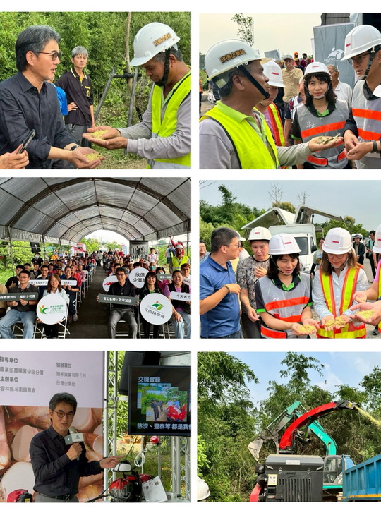 本次活動除聚焦農機安全外,亦重點推動竹筍產業剩餘資源的循環利用。雲林縣斗南鎮為烏殼綠竹筍重要產區,種植面積約400公頃,每年約有100公頃竹園需翻耕處理。過去多採就地焚燒方式,不僅每公頃成本高達3萬元,也造成空氣污染及公共安全風險。