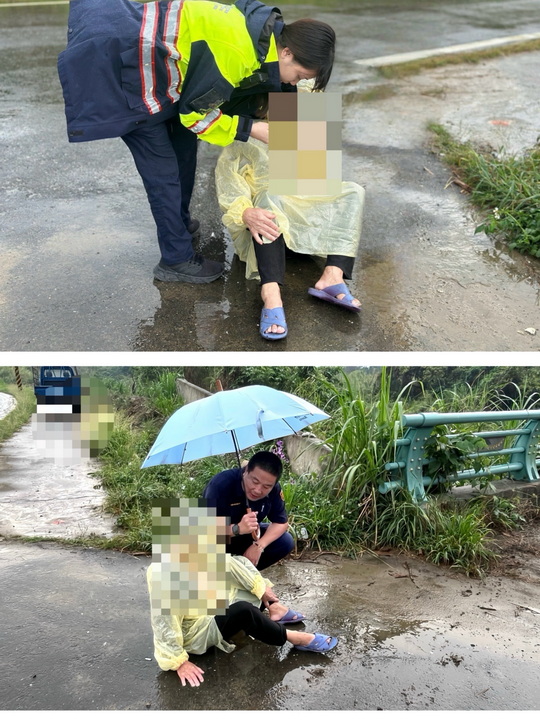 斗南警分局古坑分駐所副所長張書銘與警員江羽喬接獲報案後,立即展開搜尋行動,於轄區內進行地毯式查找。當時天候不佳,為搜尋工作增添不少困難,但員警仍不放棄任何可能線索,在風雨中持續奔走,只為盡快找到失聯的老婦人。過程中,一名熱心民眾提供關鍵資訊,表示在郊外曾看到一名疑似走失的老婦人。警方隨即趕往該處搜尋,終於在路旁發現老婦人跌坐在地,神情疲憊、體力不支,雖無明顯外傷,但已無力自行行走。