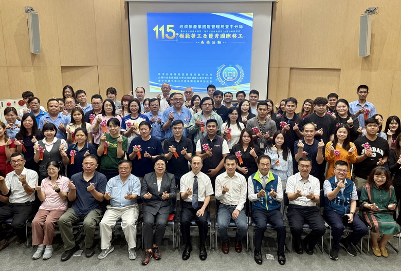【台灣新聞網記者張美惠/高雄報導】經濟部產業園區管理局臺中分局23日舉辦「115年模範勞工及優秀國際移工表揚活動」,攜手台灣科技產業園區光學及精密儀器工業同業公會,及臺中市臺中港科技產業園區廠商協進會,共同表彰來自臺中港、潭子及臺中軟體園區的68位優秀勞動者。活動現場由受獎人員與企業代表共同參與,展現園區對勞工長期投入的重視與肯定,氣氛莊重而溫馨。